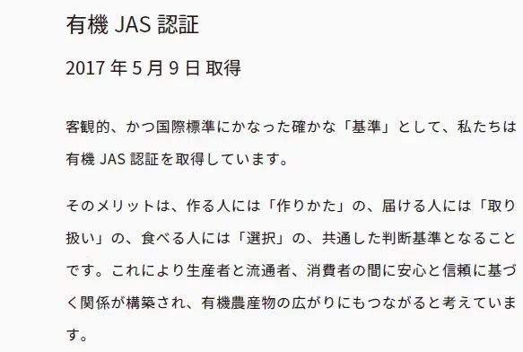 客観的、かつ国際標準にかなった確かな「基準」として、私たちは有機 JAS 認証を取得しています。